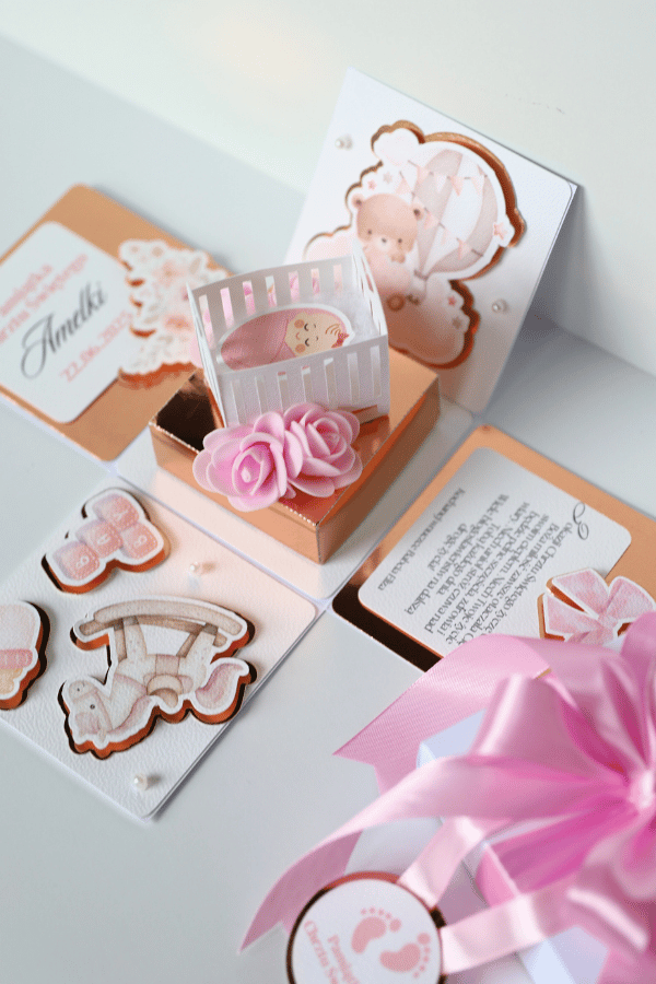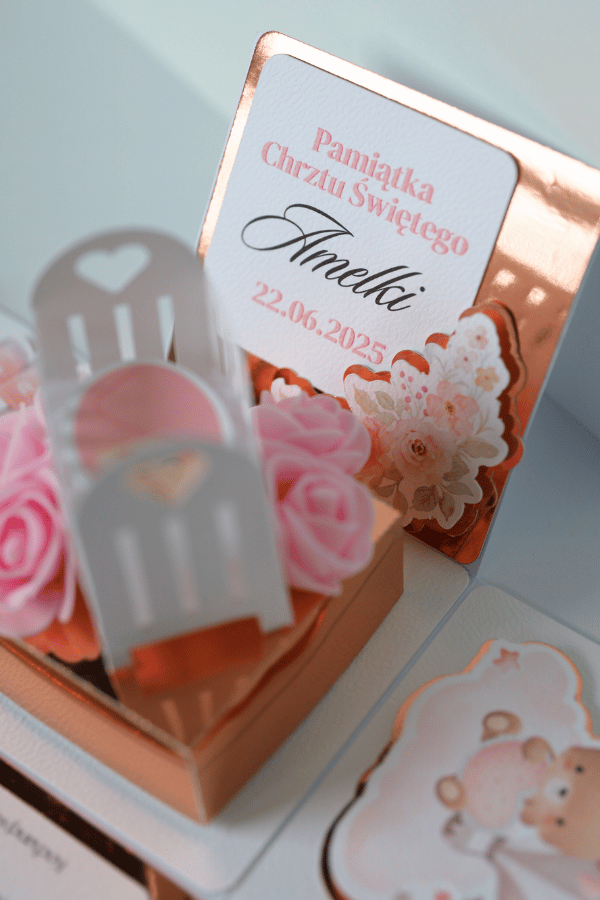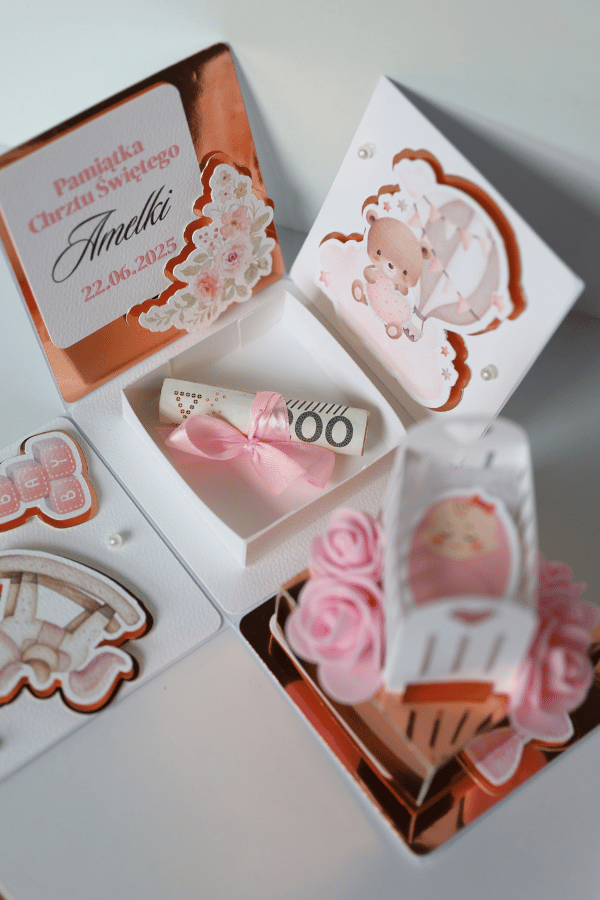 🎁 Ukryte pudełeczko – w centralnej części boxa znajduje się urocze mini-pudełko, które po uniesieniu do góry odsłania miejsce na prezent – np. pieniądze lub drobny upominek.
