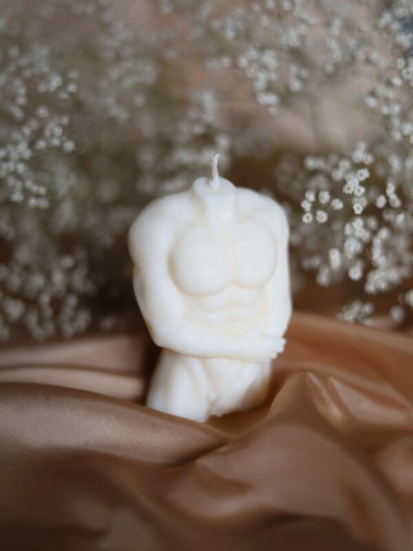 Ta wyjątkowa świeca w kształcie męskiej sylwetki jest zaskakującym połączeniem sztuki i elegancji. Jej designerski wygląd oddaje wyrazistość i siłę męskiej postury, co czyni ją niepowtarzalną ozdobą i rozmownym elementem dekoracyjnym.